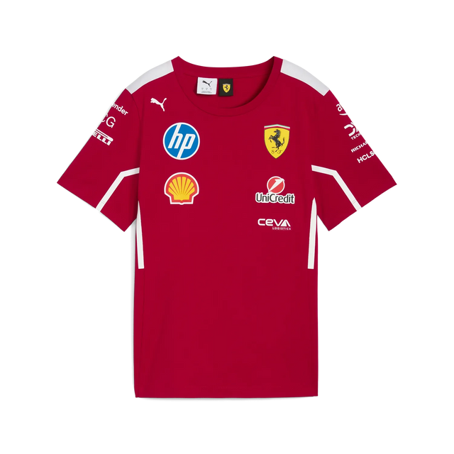 Acest stil reprezintă echipamentul purtat de Scuderia Ferrari HP în timpul sezonului, și permite Tifosi să-și arate susținerea totală pentru celebrul cavalinho. Fabricat din bumbac obținut în mod sustenabil, tricoul este conceput pentru confort și stil, permițând fanilor să-și afișeze cu mândrie apartenența la una dintre cele mai iconice echipe din istoria motorsportului. Cu culoarea sa bogată de cireș închis, acest tricou este perfect pentru purtarea zilnică sau în ziua cursei. Materialul său ușor asigură respirabilitate, făcându-l ideal pentru vreme caldă. Fie că ești la pistă sau acasă, acest tricou este un element de bază pentru orice susținător Ferrari.