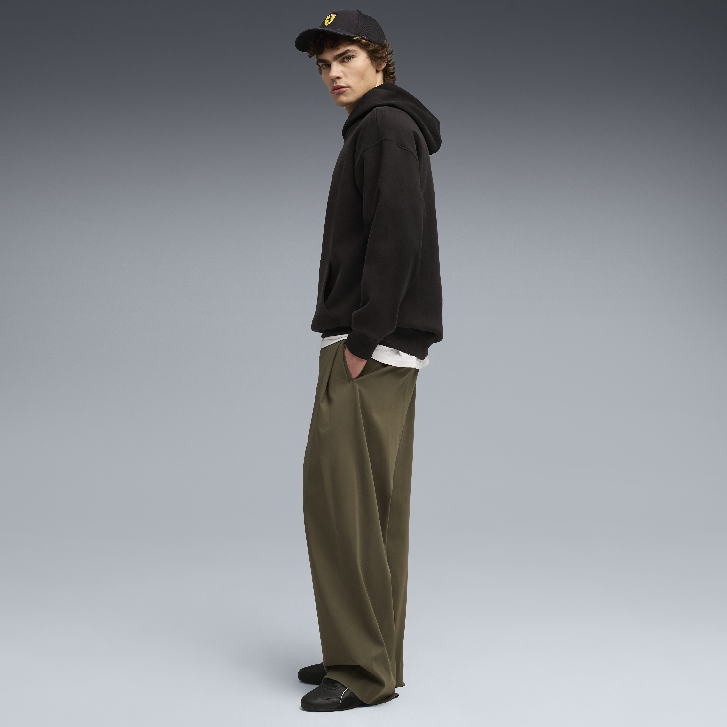 Hanorac Ferrari, Puma, îmbrăcăminte sport, logo cu scut, negru 🔥