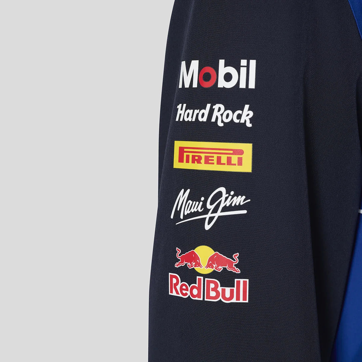 Adaugă acum în coș și pregătește-te pentru sezonul 2026 cu jacheta Red Bull, bomber, albastră — noul tău element esențial pentru ziua cursei.